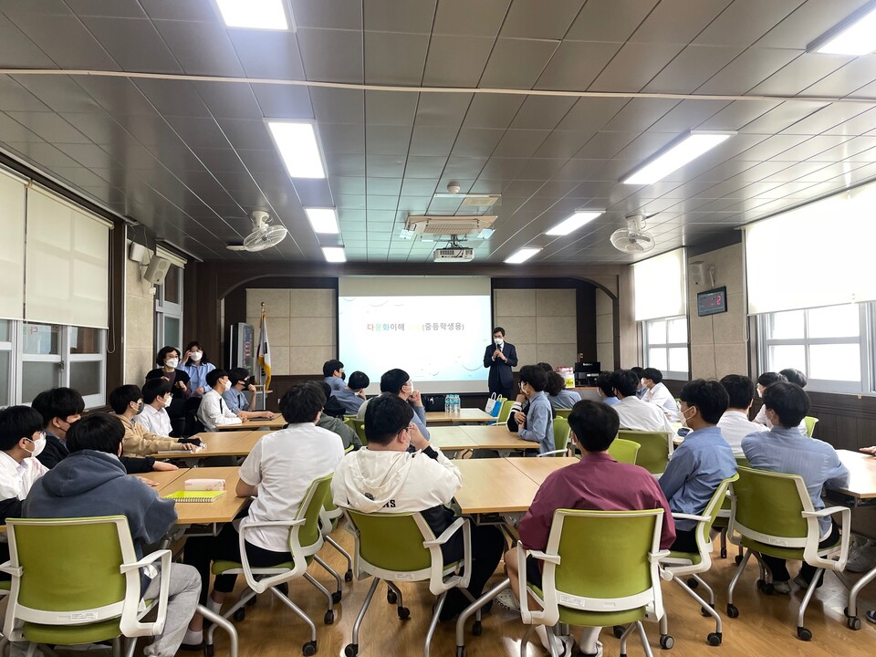 문태고 박정용 교사가 진행한 이번 프로그램은 고등학교 학생들의 다문화 역량을 기르기 위해 필요한 다문화 감수성 교육이 중심으로 이뤄졌다. 이날 진행된 프로그램은 다문화를 이해하고 편견을 갖지 않는 것, 평등에 대한 고민을 바탕으로 공감과 협력을 이끌어내는 것을 중심으로 진행됐다.