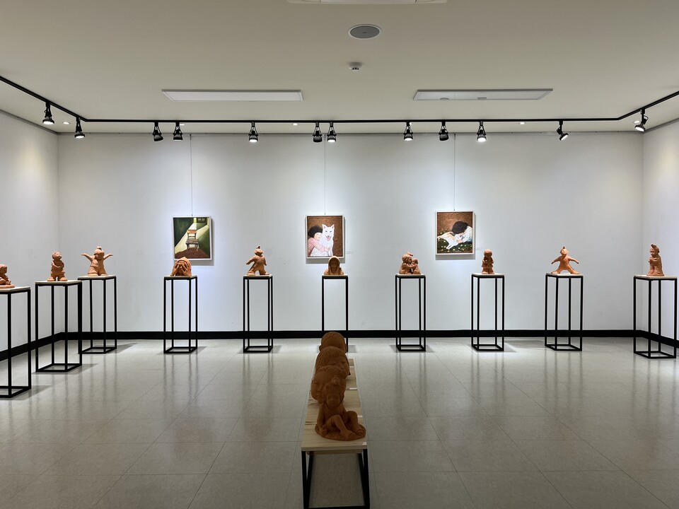 이번 전시회는 ‘꿈꾸는 아이들’이라는 주제로 자신의 삶 속에서 만나는 아이들을 소재로 해 ‘나는 나무’, ‘내 친구’, ‘추억’ 등 테라코타 작품 23점과 ‘동행’,‘친구들’ 등 그림 작품 8점을 전시한다.