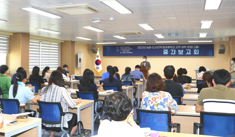 고흥교육지원청(교육장 김정희)은 지난 20일 고흥교육지원청 대회의실(3층)에서 ‘2022년 농촌-도서 지역 방과후학교 위탁운영(고흥) 중간 보고회’를 개최했다.