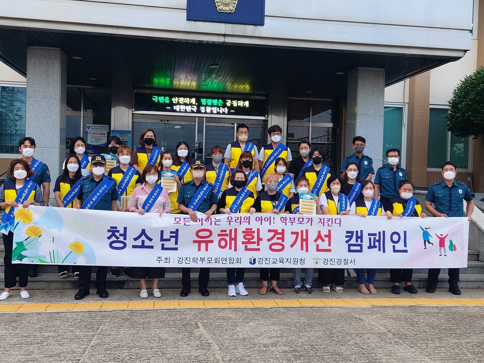 강진교육지원청(교육장 최광희)은 지난 7월 28일 관내 청소년들을 보호하기 위해 강진 학부모회 연합회가 주최해 학부모, 강진교육지원청 직원 및 강진경찰서 경찰 등 30여명이 참석한 가운데 청소년 유해환경개선캠페인을 실시했다.