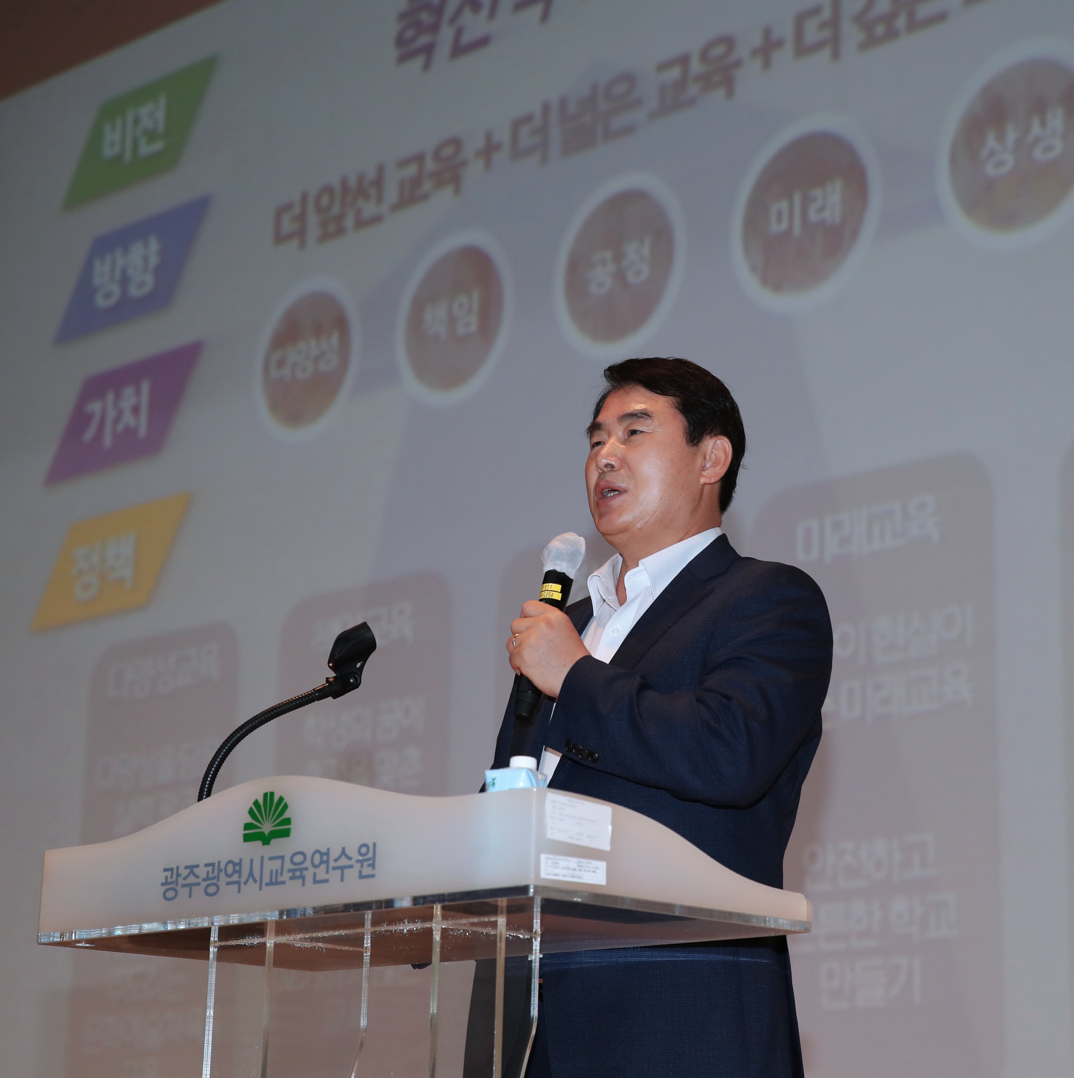 이 교육감은 먼저 새로운 광주교육 비전인 ‘혁신적 포용교육’에 담긴 의미를 설명하고, 이를 뒷받침하는 가치와 주요 정책 방향을 안내했다. 특히 5대 주요 정책 방향으로는 ▲다양성교육 ▲책임교육 ▲공정교육 ▲미래교육 ▲상생교육을 제시했다.