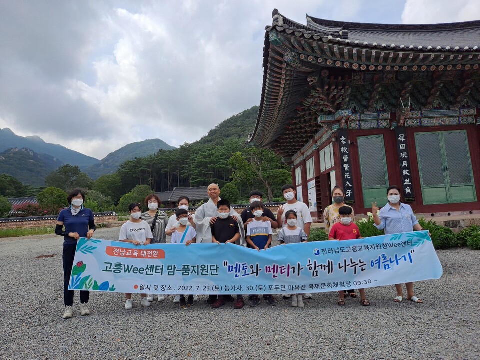 고흥교육지원청(교육장 김정희) Wee센터는 지난 7월 23일 점암면 능가사, 7월 30일 목재문화체험장에서 정서적 지원이 필요한 학생들의 건강한 여름생활을 위해 Wee센터 전문인력, 맘-품지원단 멘