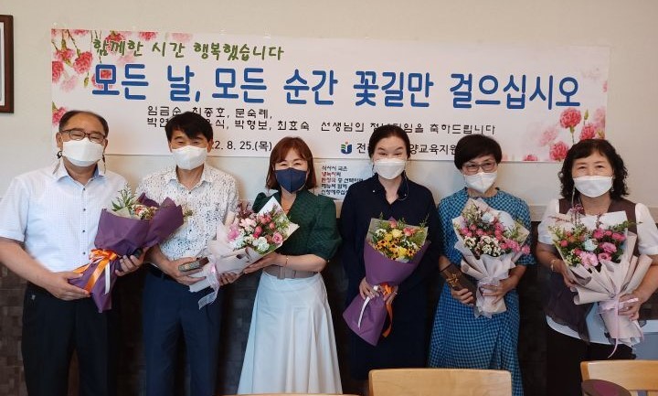 이숙 교육장은 “정년을 맞이하는 선생님들께 감사와 축하의 마음을 드린다. 항상 건강하시고 남은 인생은 즐기시길 바란다”며 “교단을 떠나시더라도 항상 담양교육에 대한 관심 가져주시고, 새로운 길을 힘차게 떠나시는 선생님들께 응원의 마음을 드린다”고 말했다.