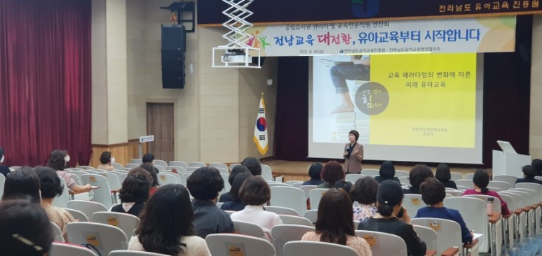 전남유아교육진흥원(원장 김진)은 26일 공립유치원 전임관리자 및 교육전문직원 73명을 대상으로 ‘공립유치원 전임관리자 및 교육전문직원 연찬회’를 실시했다.