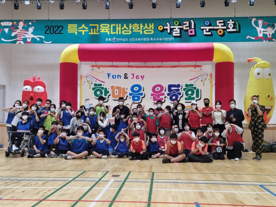 신안교육지원청(교육장 김한관) 특수교육지원센터는 지난 8월 31일 관내 유,초,중,고 특수교육대상학생들과 그 가족들을 대상으로 압해도에 있는 ‘신안군민체육관’에서 '2022. 특수교육대상학생 어울림 운동회'를 성황리에 마쳤다.