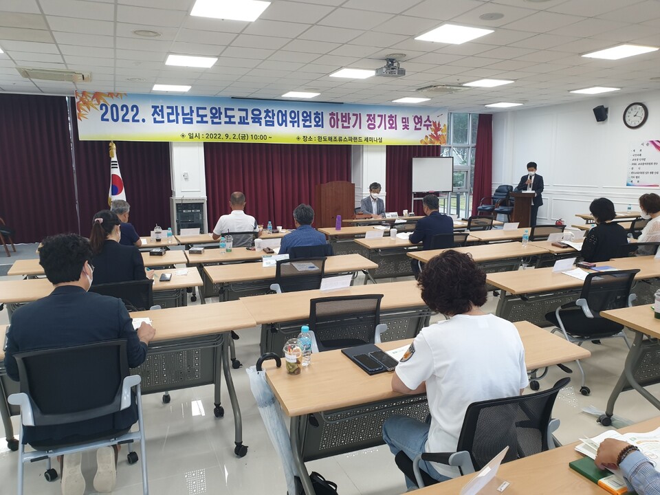 완도교육지원청(교육장 서장필)은 지난 2일 완도해조류스파랜드 세미나실에서 '함께 성장하는 교육공동체, 혁신완도교육' 실현을 위한 완도교육참여위원회 하반기 정기회 및 연수를 개최했다.