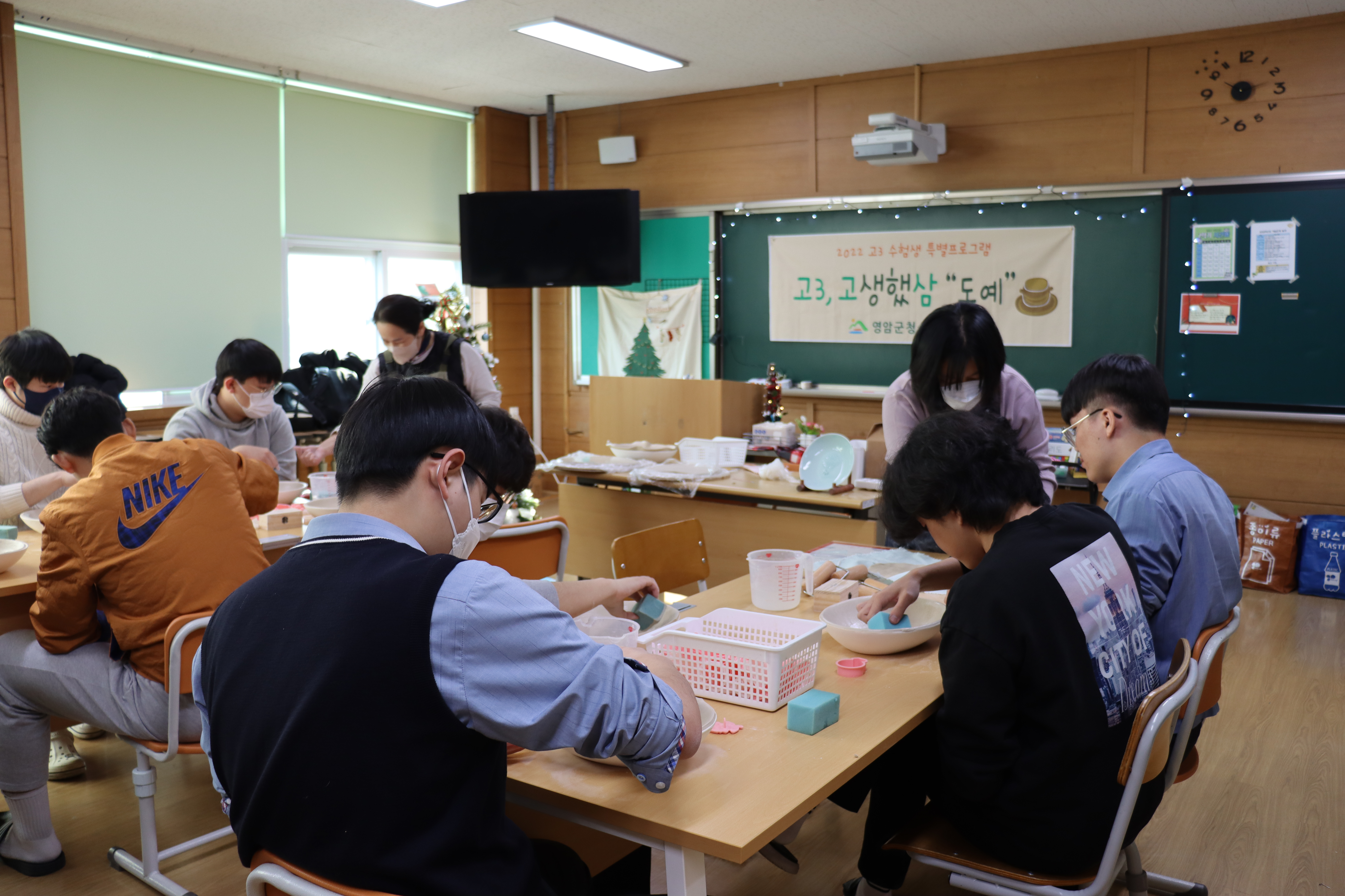 이번 행사는 영암군 청소년 수련관 주최로 진행됐으며 학업에 쌓인 스트레스 해소를 위해 다양한 체험 프로그램을 운영한 것이다. 이날 프로그램은 신청한 학생별로 베이킹, 도예, 캔들 체험을 실시했다.