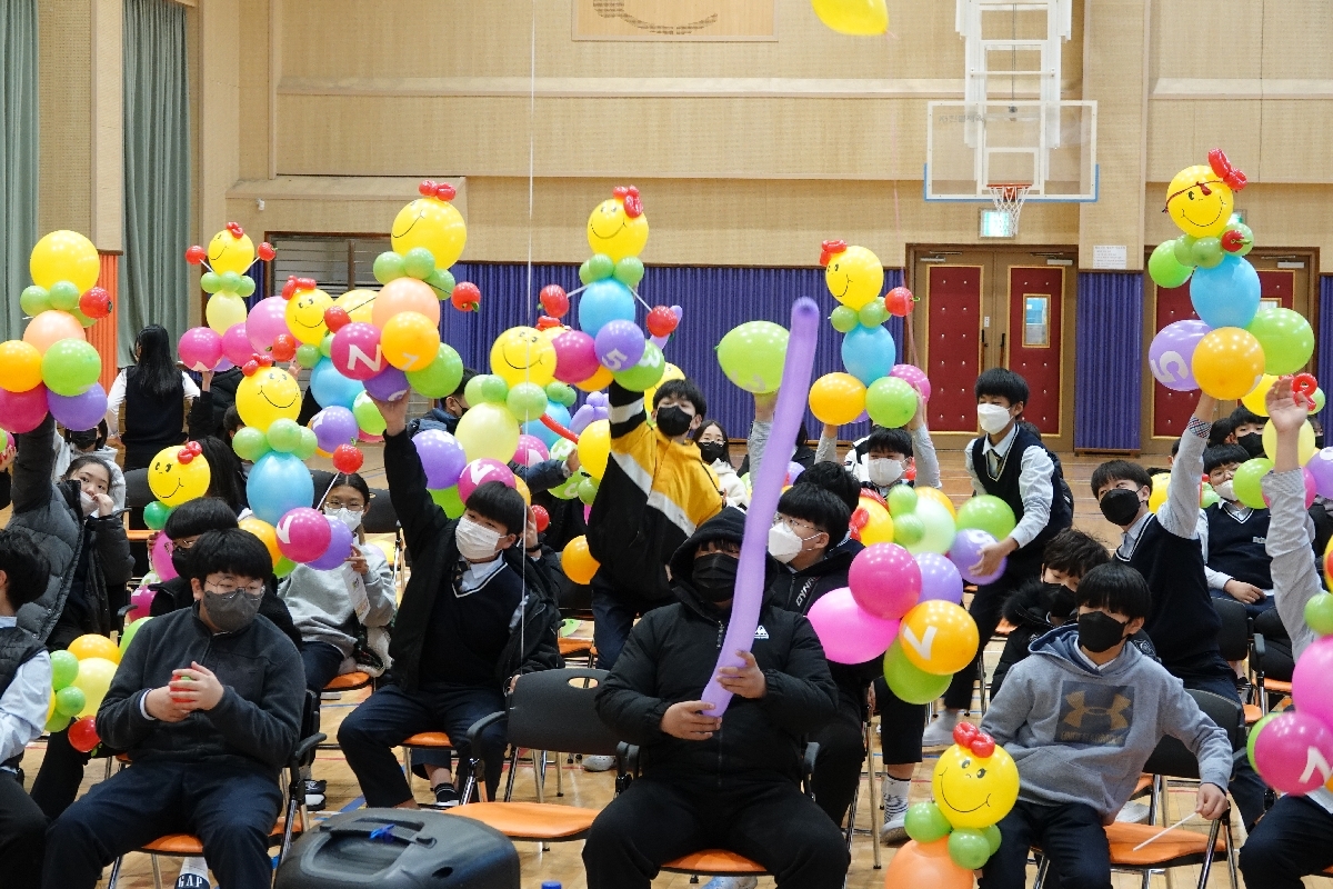 또한 260요술풍선으로 각종 동물 만들기, 요술풍선 멀리 날리기, 사과풍선 만들기, 스마일 캐릭터 기둥 만들기, 라운드 풍선과 스마일 만들며 시각적인 효과로 학생들의 호기심을 자극하고 상상력을 키우는 신나고 즐거운 시간으로 펼쳐졌다.