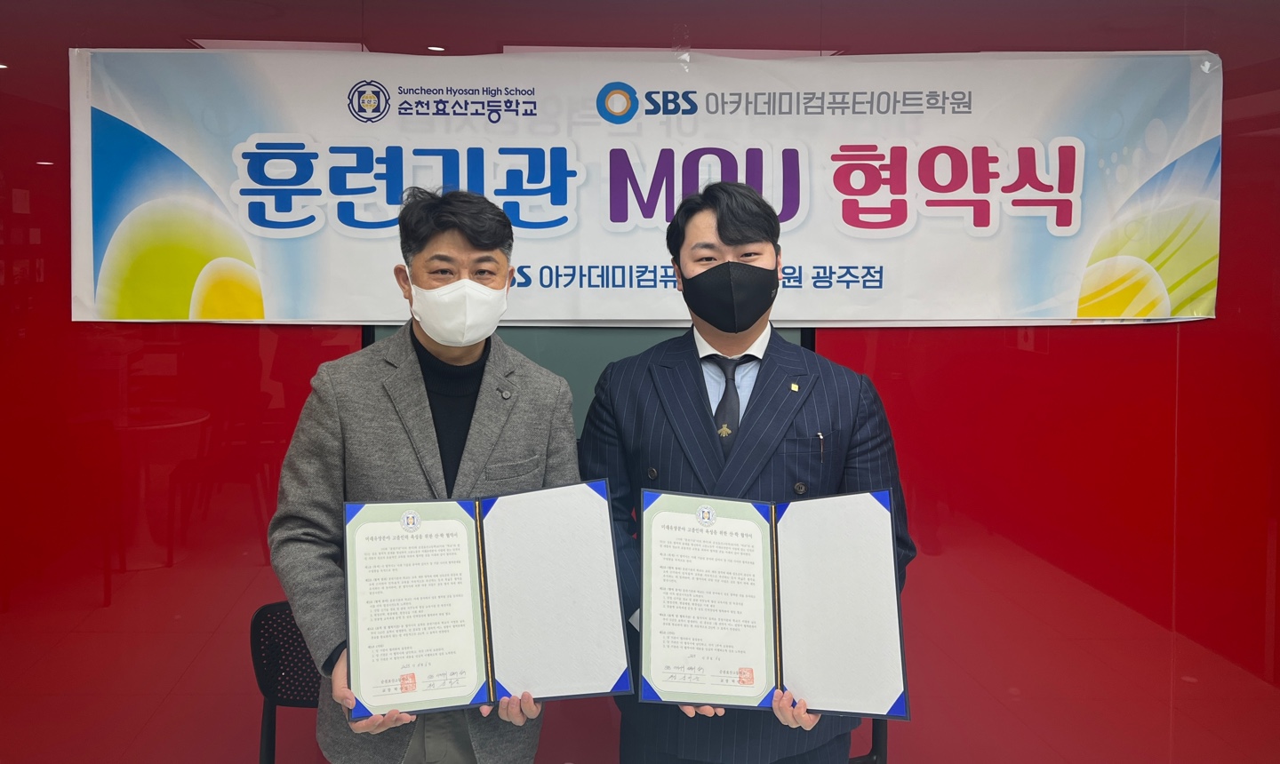 순천효산고등학교(교장 박성영)는 지난 6일 SBS아카데미컴퓨터아트학원 광주점과 '2023년 고용노동부 미래유망분야 고졸인력양성사업' 훈련기관 업무협약을 체결했다.