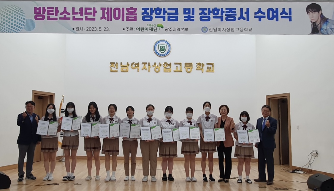 전남여자상업고등학교가 지난 23일 교내 우주동인관에서 ‘방탄소년단(BTS) 제이홉 장학금’ 수여식을 개최해 장학금과 장학증서를 전달했다.