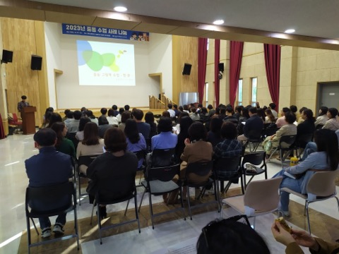 이번 수업 사례 나눔은 『학생들을 깊은 탐구로 이끄는 중등 그림책 수업』을 주제로 전체 강연이 이루어졌다. 교과의 특성을 살려 9개 교과에 대하여 교과별 수업 사례 나눔 및 토론의 시간을 가졌다.