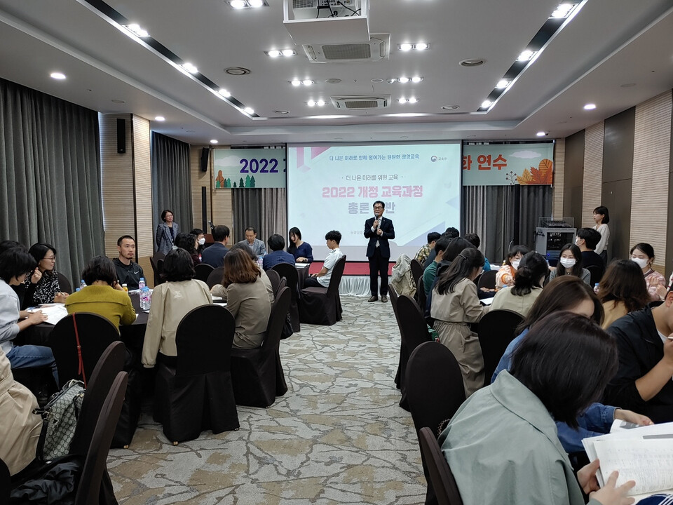 광양교육지원청(교육장 이계준)이 관내 중등 전문적학습공동체 구성원을 포함한 전 교원 대상 ‘2022 개정 교육과정 총론 연수’를 진행했다.