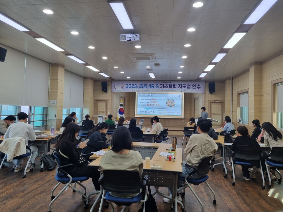나주교육지원청(교육장 변정빈)은 지난 10월 31일 초등 기초학력 업무 담당자 및 희망교사 25명을 대상으로 기초학력 향상 지원을 위한 '4R’s 기초학력 지도법 연수' 프로그램을 운영했다.