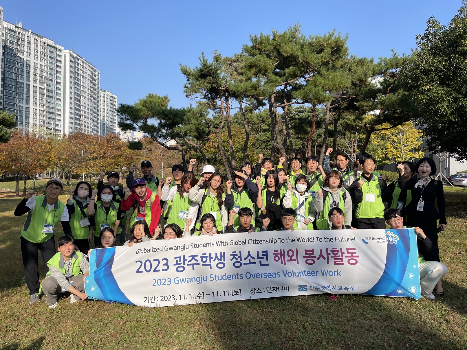 광주교육청 청소년 해외 봉사단 탄자니아로 봉사활동 출발! 이정선 교육감 “나눔과 배려의 봉사정신을 갖춘 글로벌 리더로 성장 바란다” 광주교육청이 1~11일 8박11일 일정으로 광주 관내 중·.