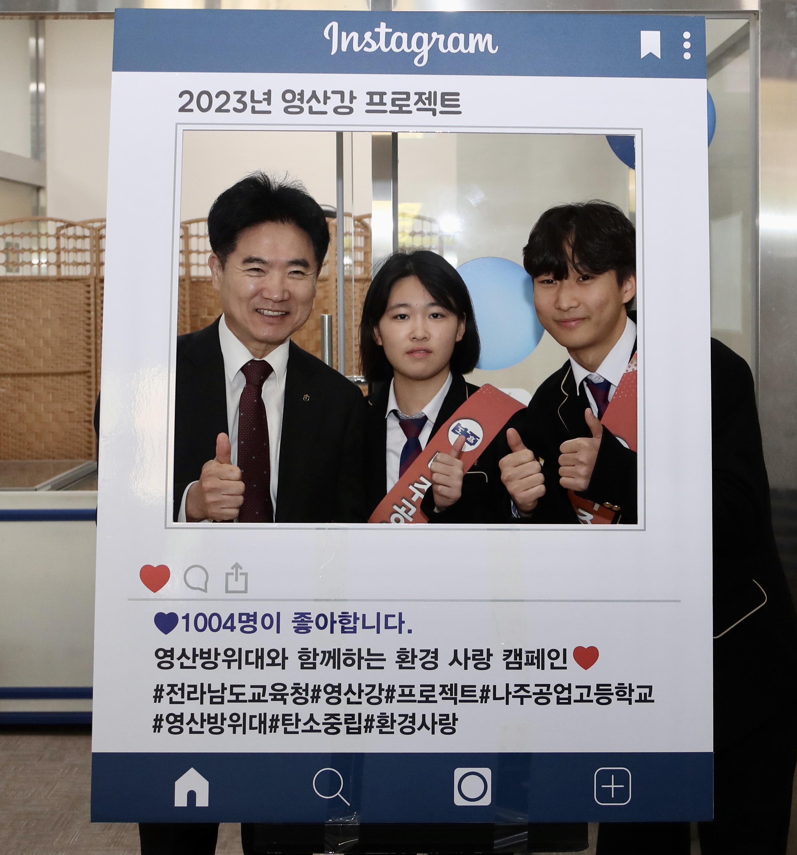 이 밖에 ‘기후환경 위기와 기후정의’를 주제로 한 초청 강의와 전남탄소중립 선도학교 우수사례 발표, 주제별 질의응답이 진행돼 지구환경과의 공생을 꿈꾸는 전남 교육가족들의 깊은 관심을 엿볼 수 있었다. 특히 지구환경과의 공생을 꿈꾸는 자리인 만큼 현수막을 내걸지 않은 점과 행사장 포토존 장식 또한 모두 종이로 제작한 점이 눈에 띄었다