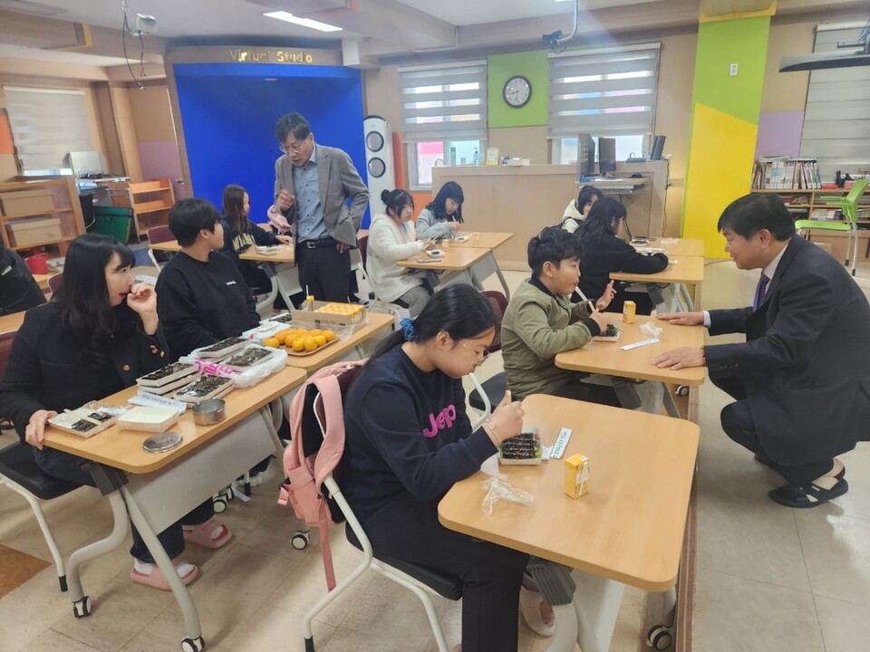 현장 점검단은 학생들과 함께 아침 간편식을 먹으며 학생들의 의견을 듣고 학교 업무 담당자와 면담을 통해 아침 간편식 사업 운영 현황과 애로사항을 청취했다.