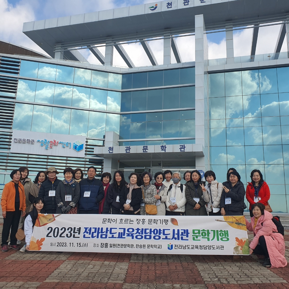 [담양=조미선기자] 담양도서관은 지난 15일 도서관에서 연중 운영하고 있는독서회 '청담서당', 낭독회 '햇무리' 회원들과 ‘문학이 흐르는 장흥 문학기행’이라는 주제로 문학기행을 실시했다.