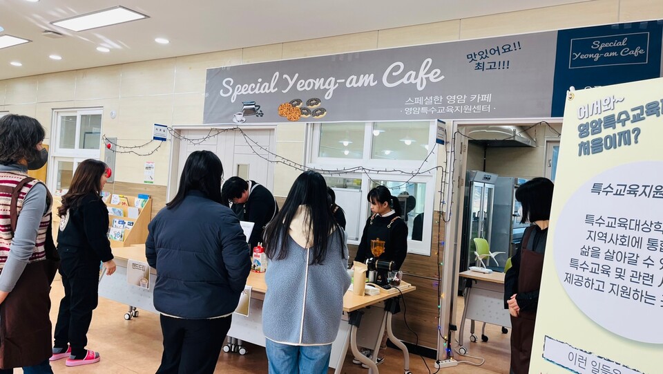 [영암=김용석기자] 영암교육지원청(교육장 김광수)은 지난 22일 전 직원을 대상으로 ‘스페셜한 영암 카페'를 운영했다. 이 특별한 행사는 진로․직업 프로그램에 참여한 장애학생들에게 실질적인 직업체험의 기회를 제공해 미래 직업인으로서 미래를 밝게 비추는 의미를 담고 있다.