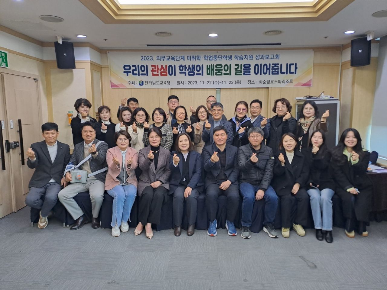 전남교육청(교육감 김대중)은 지난 22일 화순 금호스파리조트에서 ‘2023 꿈 이음 성과보고회’를 갖고 의무교육단계 미취학‧학업 중단 학생들의 학습지원 방안을 논의했다.