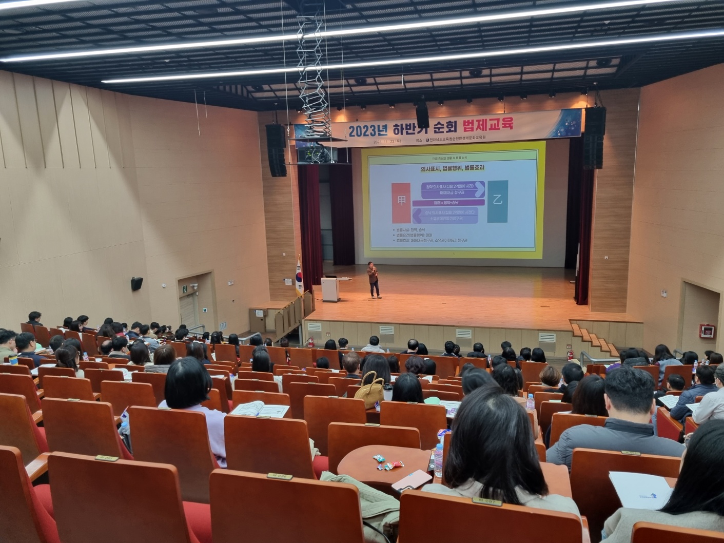 [전남=차승현기자] 전남교육청(교육감 김대중)이 11월 23~24일 이틀간 순천만생태문화교육원과 동신대학교에서 본청․직속기관․교육지원청·각급학교 소속 공무원 400여 명을 대상으로 2023년 하반기 순회 법제교육을 실시한다.