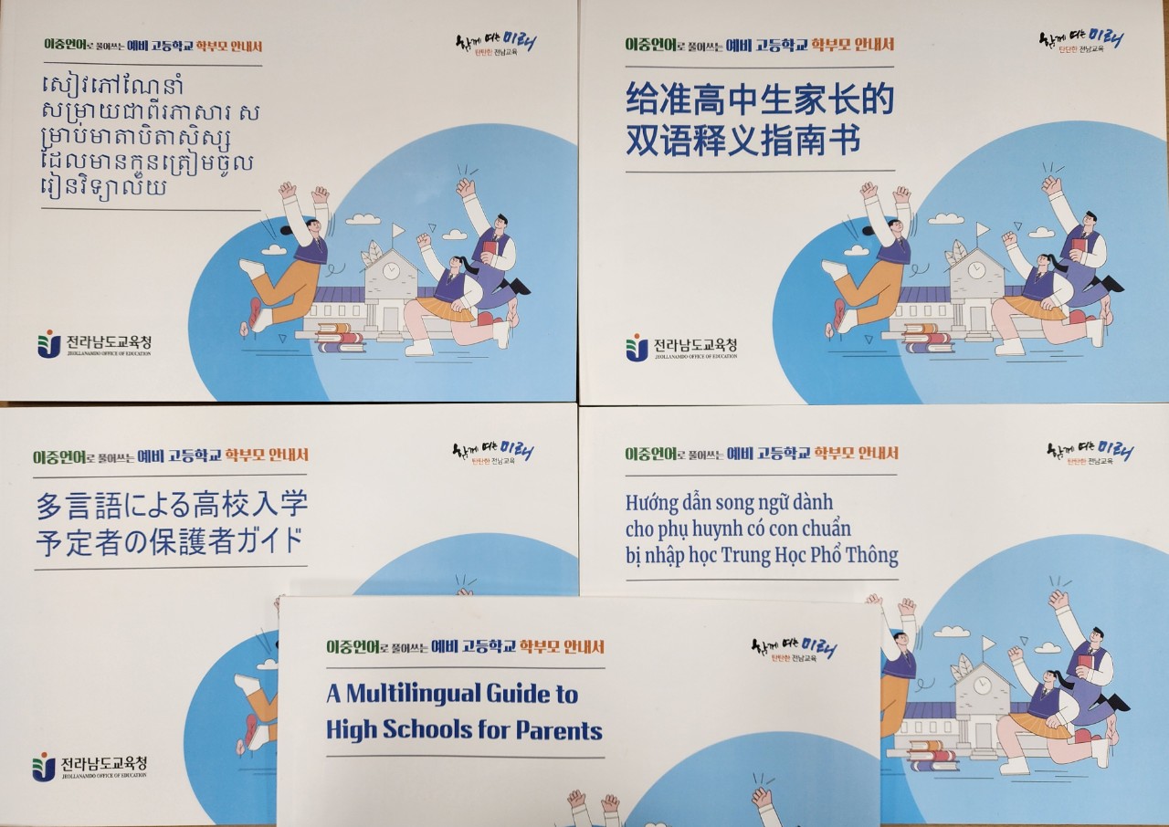 [전남=차승현기자] 전남교육청(교육감 김대중)이 다문화가정 학부모의 자녀교육 역량 강화를 위해 ‘이중언어로 풀어쓰는 예비 고등학교 학부모 설명서’를 5개 언어로 제작했다.