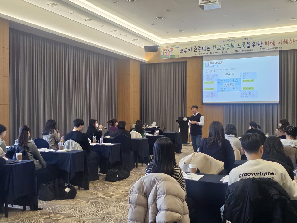 [고흥=조미선기자] 고흥교육지원청(교육장 박경희)은 지난 24일~25일에 고흥 썬밸리리조트 동백홀에서 유·초등교사 18명을 대상으로 '모두가 존중받는 학교공동체 소통을 위한 학생 이해하기 직