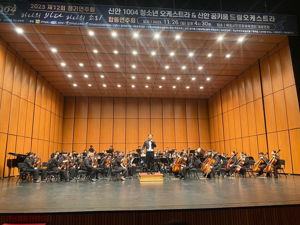 [신안=차승현기자] 신안교육지원청(교육장 민방기)은 지난 26일 섬지역 청소년들이 한 곳에 모여 희망을 연주하는 신안1004청소년오케스트라 제12회 정기연주회가 목포시민문화체육센터 대극장
