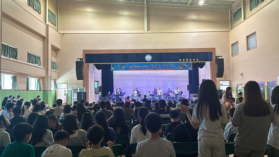 [광양=오나연기자] 광양햇살학교(교장 옥윤옥)는 최근 광양시립예술단과 함께하는 ‘햇살 속 하모니’ 공연을 운영했다.