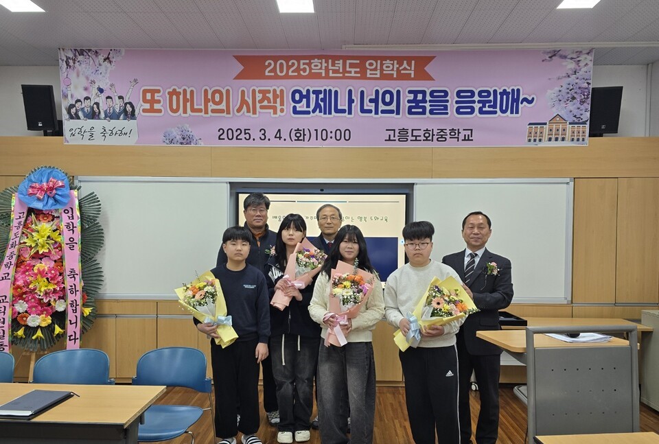 최근 고흥도화중은 소중한 신입생 4명을 받았다. 초등 6년 과정을 마치고 새로운 도전을 향한 또 하나의 시작 힘찬 첫 걸음을 내디뎠다.