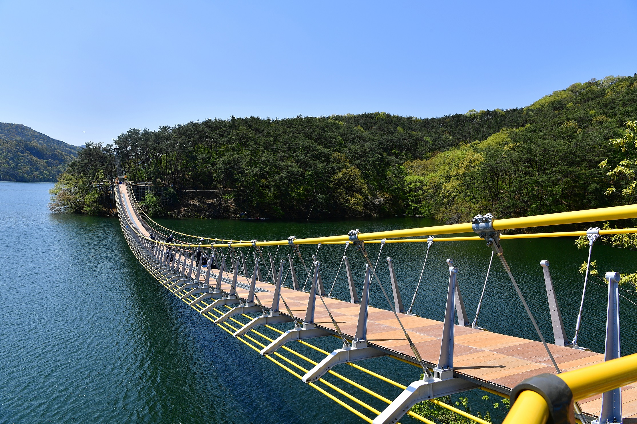 제1출렁다리를 지나 도보로 약 20분 쯤, 거리로 환산했을 때 1km 정도 수변길을 걸으면 만나게 되는 황금빛 출렁다리는 장성읍 용곡리에 위치해 있다.