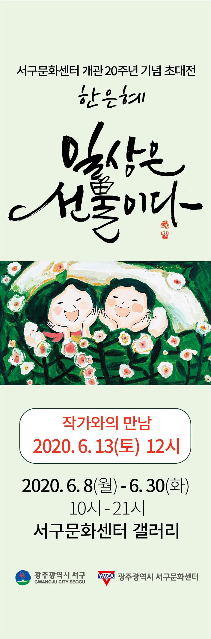 광주서구문화센터는 개관 20주년을 맞아 한은혜 작가 초대전 <일상은 선물이다>를 6월 8일부터 30일까지 서구문화센터 로비와 갤러리에 마련한다.