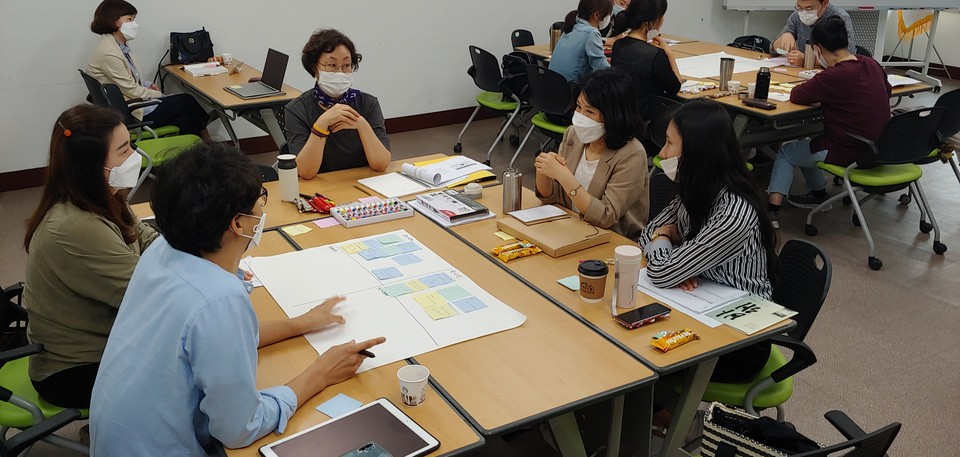 이번 연수는 ‘회복적 정의와 학교교육’이라는 주제 아래 회복적 생활교육의 이해와 정의, 회복적 정의를 통한 수치심의 치유와 적용 등의 내용으로 생활속거리두기 지침을 지키며 3일간 진행됐다. 강의에 나선 한국평화교육훈련원 정용진 소장은 학교폭력 상황이 발생했을 때 학교는 어떤 관점으로 학생들을 대해야 하는가에 대한 물음으로 시작하여 응보적 정의와 회복적 정의를 비교하고 학생들을 위해 어떤 선택을 할지에 대한 응답으로 강의를 마무리 지었다.