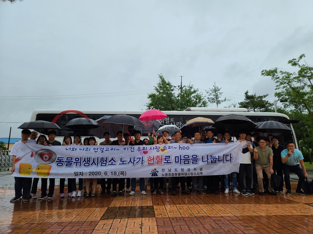 전남도 동물위생시험소는 지난 18일 ‘코로나19’ 등 국가 위기 상황을 극복하기 위해 전남도청공무원노동조합 동물위생시험소지부와 ‘사랑의 생명나눔 헌혈 행사’를 펼쳤다.