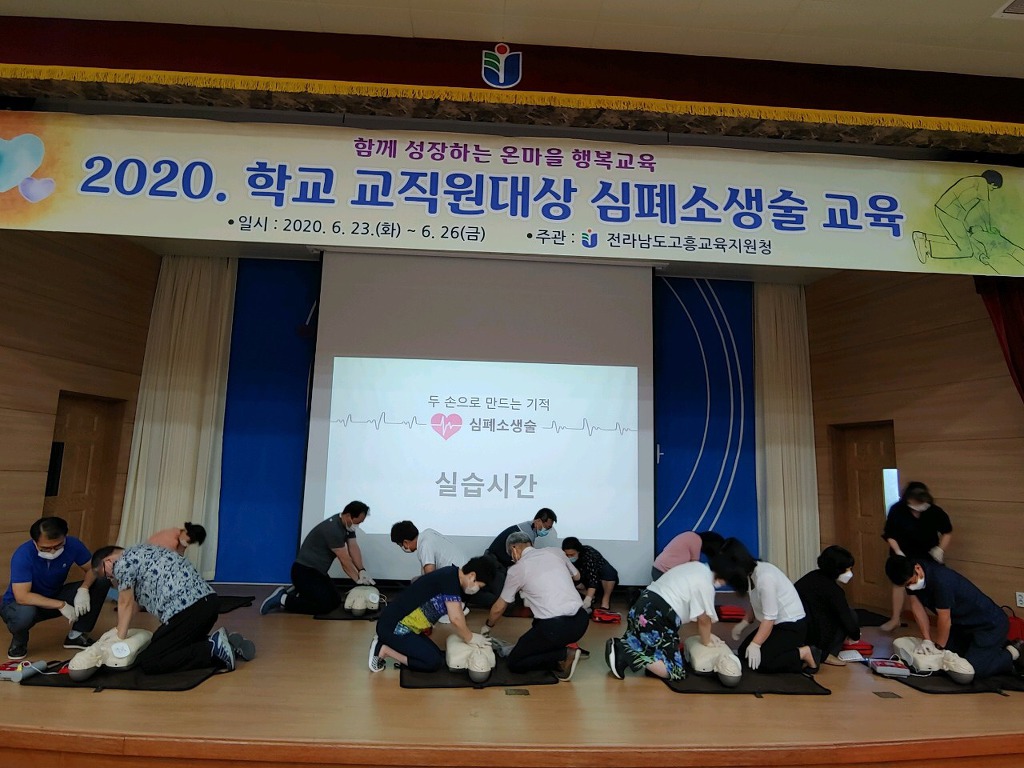 고흥교육지원청 학교지원센터에서는 23일 ~ 26일까지 4일간에 걸쳐 고흥교육지원청 관내 교직원을 대상으로 응급환자 발생 시 신속하게 대처할 수 있는 기본 심폐소생술과 자동제세동기 사용법, 이 물질에 의한 기도 폐쇄 응급처치 등의 교육을 실시하고 있다.