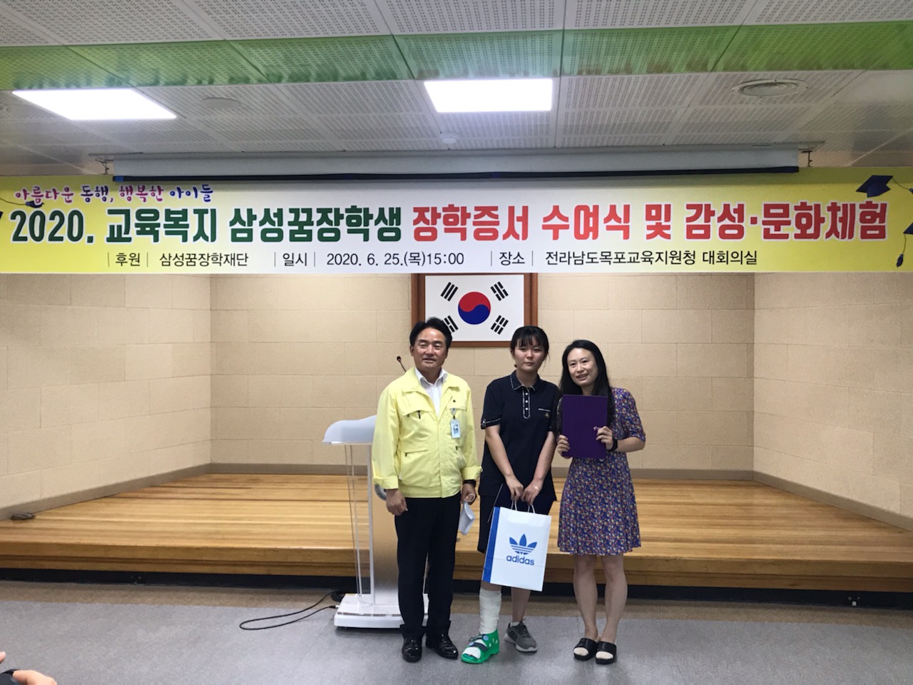 목포교육지원청(교육장 김재점)은 25일 15시 목포교육지원청 대회의실에서 「2020년 삼성꿈장학재단 멘티와 멘토가 함께하는 꿈장학 증서」를 전달했다.